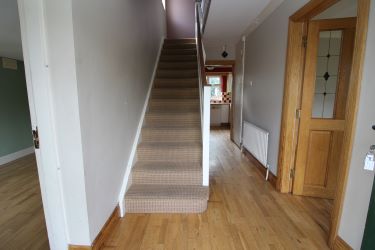 Accommodation consists of: Hall: 1.86 x 4.45 Stairwell, Timber floor, Cloakroom Kitchen/Diningroom Area: 2.66 x 6.08 Fitted eye and floor level units, dishwasher, sink unit, hob, oven, fridge freezer, double doors to rear garden Back Porch: 2.75 x 0.88 Tiled floor Utility: 2.82 x 1.03 Plumbed for washing machine and dryer Ground floor Bedroom/Office: 2.89 x 4.28 Timber floor Ensuite: 2.39 x 0.97 wc, whb, shower Bathroom: 1.64 x 2.06 Bath, wc, whb, electric shower, partially tiled Bedroom 2: 3 x 4 Carpet, Built in wardrobe Bedroom 3: 3.79 x 3.03 Carpet, Built in wardrobe Bedroom 4: 2.07 x 2.67 Carpet, Built in wardrobe